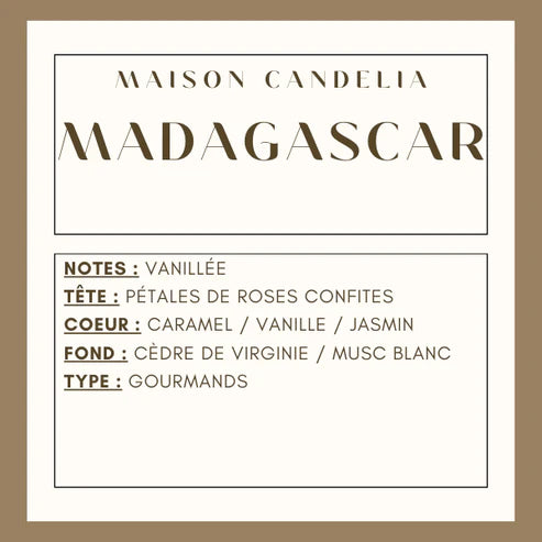 Découvrez la bougie Madagascar – Vanille de Maison Candelia, une création coulée à la main dans un élégant pot en Jesmonite brun. Sa cire de soja naturelle et sa mèche en bois de cerisier offrent une combustion douce et un léger crépitement, apportant une ambiance chaleureuse et authentique.